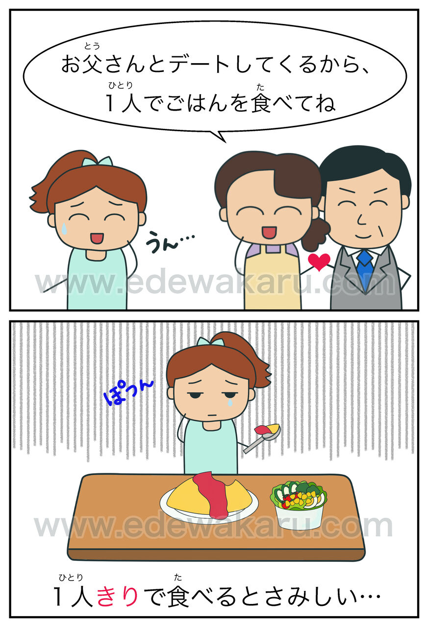 ①1人きりで食べるとさみしい…